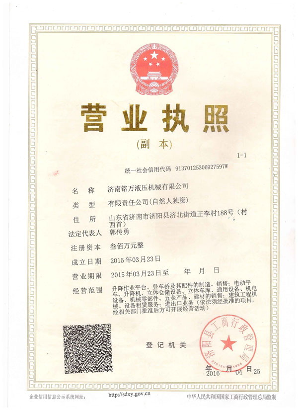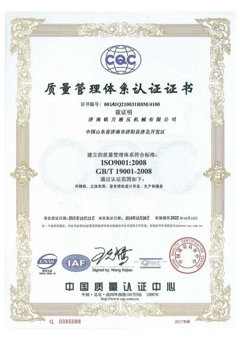 +濟(jì)南銘萬(wàn)液壓機(jī)械有限公司【原濟(jì)南機(jī)械廠】,是全國(guó)制造液壓升降機(jī)、升降平臺(tái)的廠家,產(chǎn)品有八大系列六十多個(gè)品種,規(guī)格齊全、質(zhì)量穩(wěn)定、安全可靠、方便快捷;產(chǎn)品銷往全國(guó)各地,深受用戶好評(píng)。升降機(jī)廠家技術(shù)力量雄厚,產(chǎn)品設(shè)計(jì)先進(jìn)、工藝成熟、實(shí)驗(yàn)檢測(cè)手段完善,“質(zhì)量第一,用戶至上”是我們的宗旨。 本公司采用先進(jìn)的管理手段,嚴(yán)密的質(zhì)量監(jiān)控體系和良好的售后服務(wù)隊(duì)伍為我們的產(chǎn)品走向市場(chǎng)創(chuàng)造......